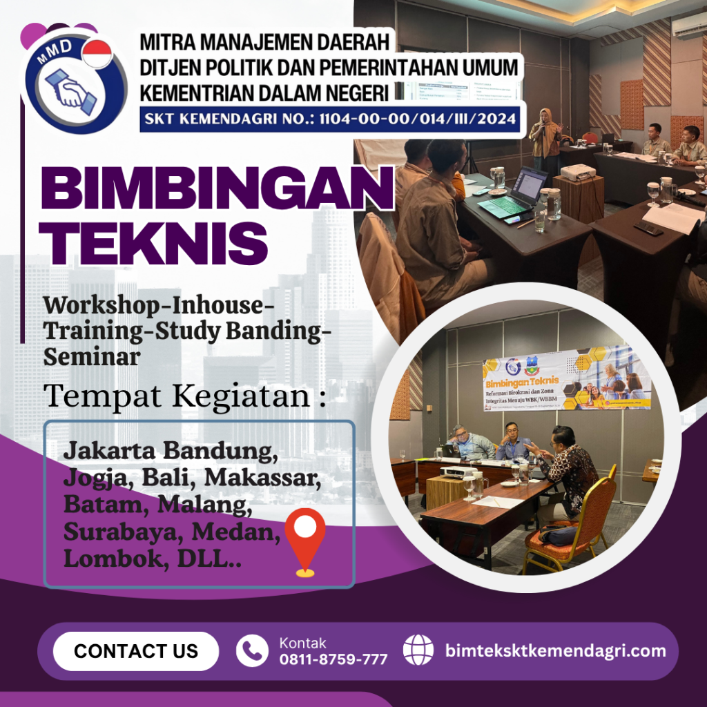 Bimtek Reformasi Birokrasi dan Zona Integritas Menuju WBK/WBBM adalah kegiatan pelatihan yang dirancang untuk meningkatkan pemahaman dan kemampuan aparatur pemerintah dalam menerapkan prinsip reformasi birokrasi secara menyeluruh dan berkelanjutan, khususnya melalui pembangunan Zona Integritas (ZI) sebagai langkah strategis meraih predikat Wilayah Bebas dari Korupsi (WBK) dan Wilayah Birokrasi Bersih dan Melayani (WBBM).